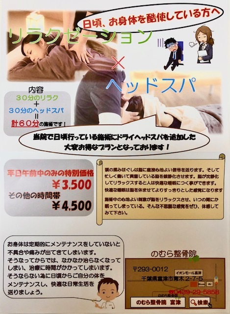 『30分リラクゼーション×30分ドライヘッドスパ』です!!